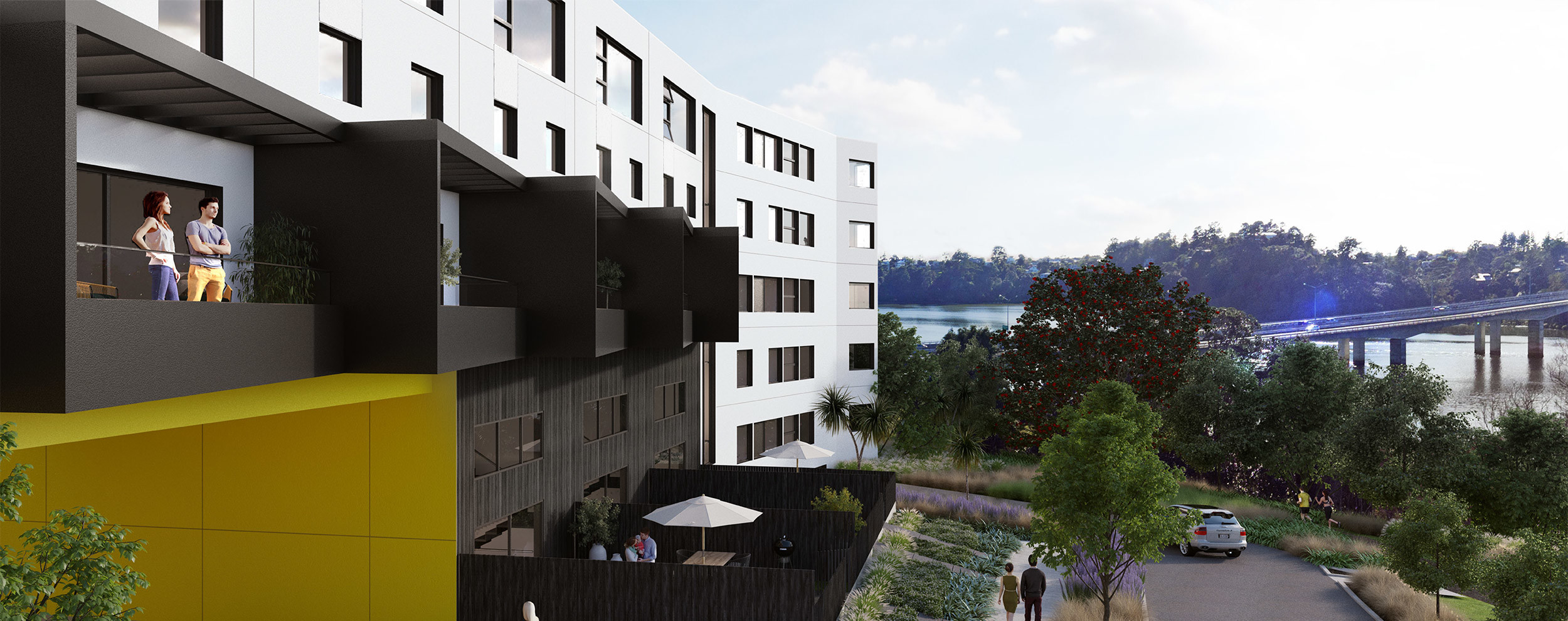 Each apartment has at least one private outdoor space.