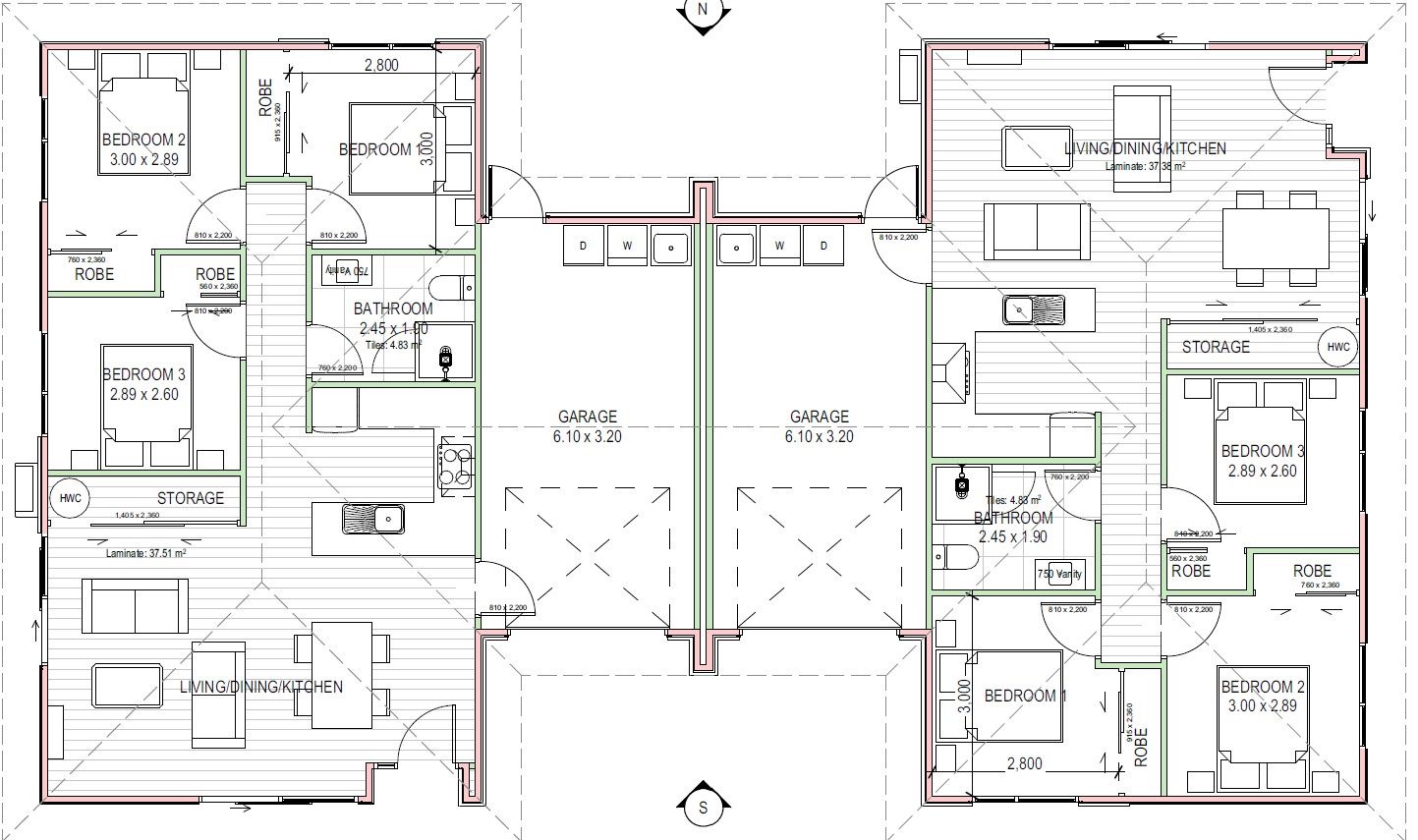 These Turn-Key Fixed Price contract Homes will have two postal addresses/letter boxes and two lots of green, recycling & rubbish bins, but are on one title (cannot be subdivided under current rules).